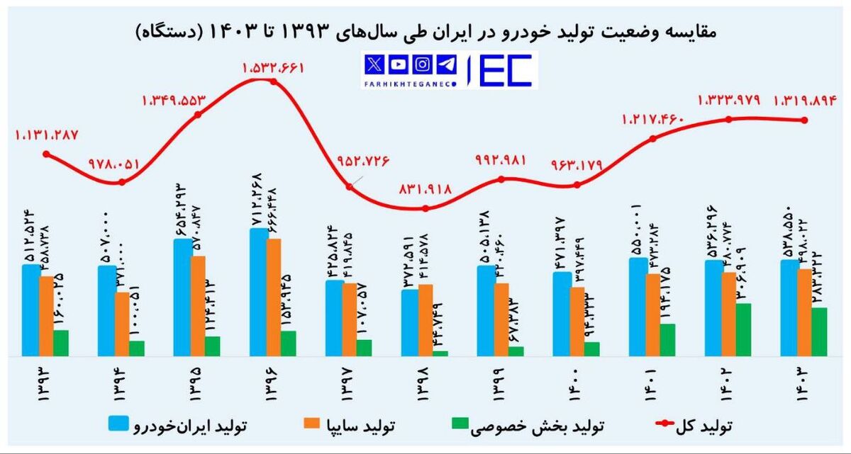 تحقیقات از گزارش های ماهانه خودروسازان نشان می دهد که کل تولید دو خودروساز دولتی به 2 میلیون و 6000 واحد رسیده است که از این تعداد حدود 1.2000 یا 2 درصد بیشتر از سال 2 است.
