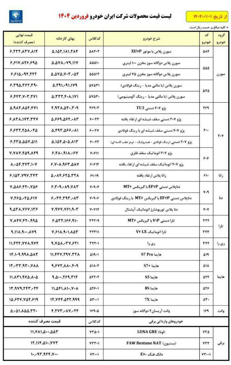 به گفته بازار ، ایران خمرو لیست قیمت محصولات خود را در اوایل ماه آوریل منتشر کرد. عوارض و پرداخت های قانونی سال جدید در قیمت لیست قیمت محصولات ایرانی Khodro گنجانده شده است. بنابراین ، قیمت کلیه محصولات این شرکت چندین میلیون دلار افزایش یافته است.