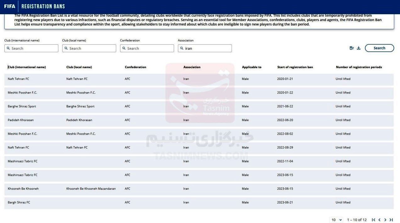 سیستم انتقال FIFA با جدا کردن کنفدراسیون ، کشور و نام تیم ، گزارش های مربوط به باشگاه های محروم یا پنجره های بسته را اعلام می کند. بر این اساس ، پنجره نقل و انتقالات سپاهان شب گذشته برای رسیدن به 8 باشگاه محروم افتتاح شد.