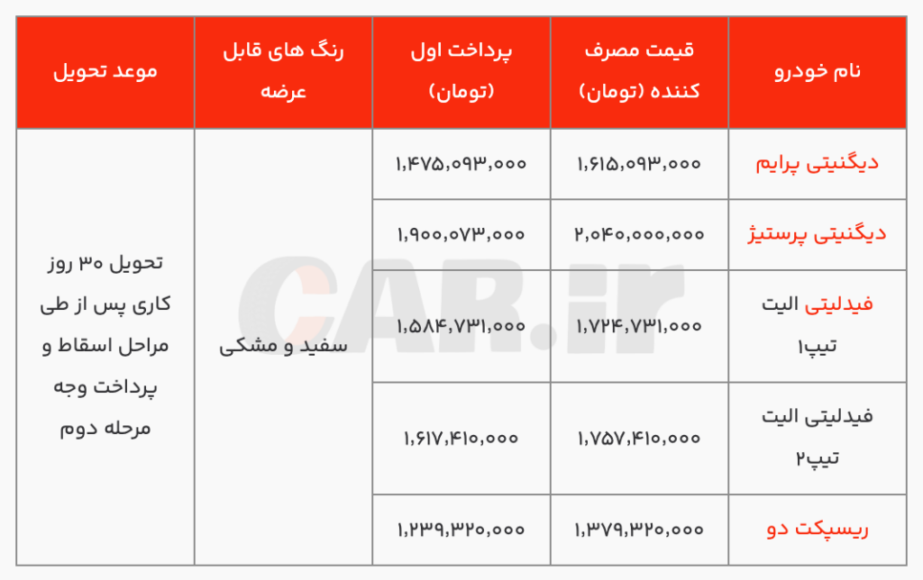 آغاز پیشثبتنام خودروهای فیدلیتی، ریسپکت و دیگنیتی ویژه مالکان خودروهای فرسوده