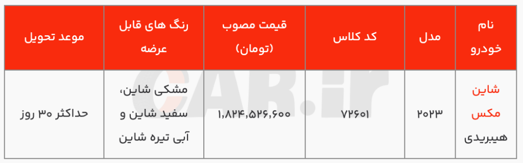 فراخوان واریز وجه شاین مکس هیبریدی ایران خودرو (بهمن ۱۴۰۳)