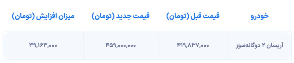 قیمت وانت آریسان 2 به شدت افزایش یافت