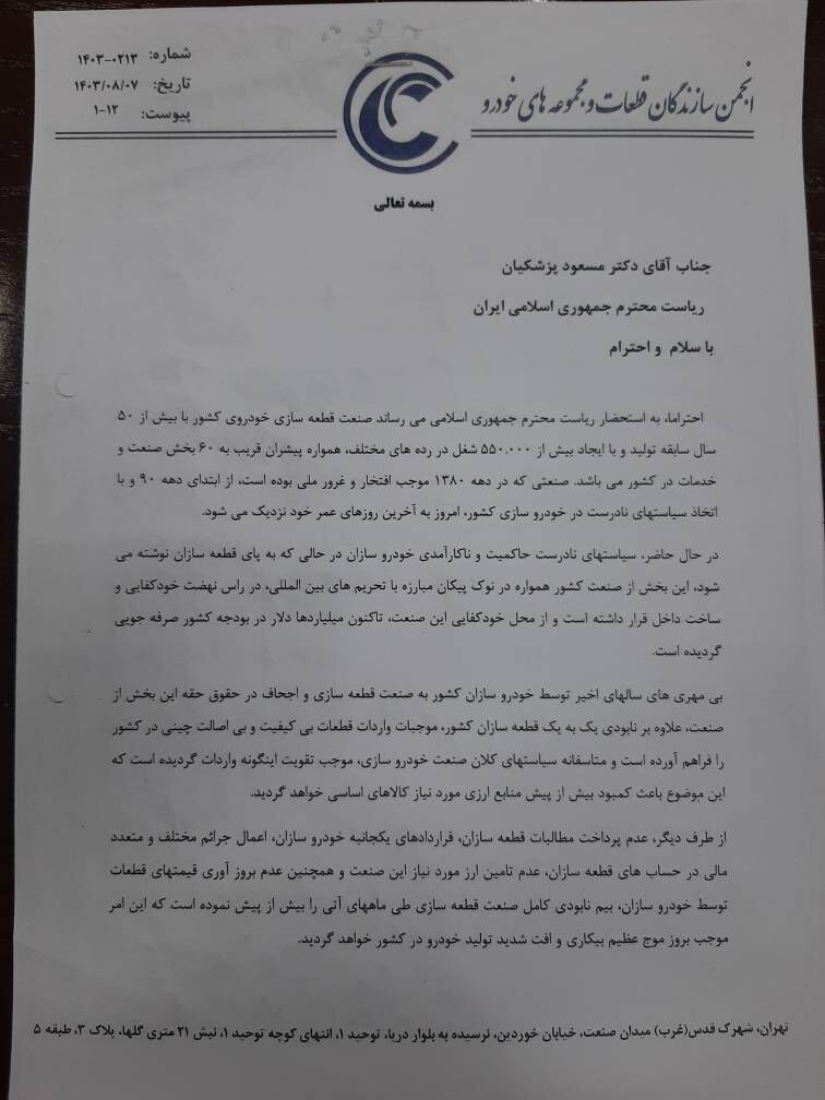 امید محمدی، بازار: صبح امروز نشست خبری با موضوع بررسی آخرین وضعیت صنعت قطعه سازی، موانع، مشکلات و ارائه راهکارهای موثر در محل انجمن قطعه سازان و مجموعه سازان خودرو با حضور اعضای انجمن برگزار شد. هیئت مدیره این انجمن و اصحاب رسانه. یکی از محورهای این جلسه نامه بیش از 100 قطعه ساز بزرگ […]