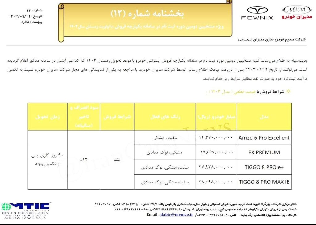 فروش ۴ محصول شرکت مدیران خودرو به قیمت کارخانه