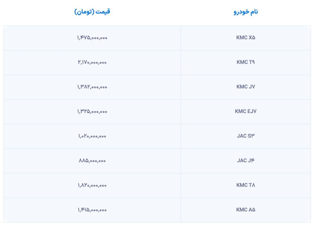 لیست قیمت محصولات کرمان موتور منتشر شد
